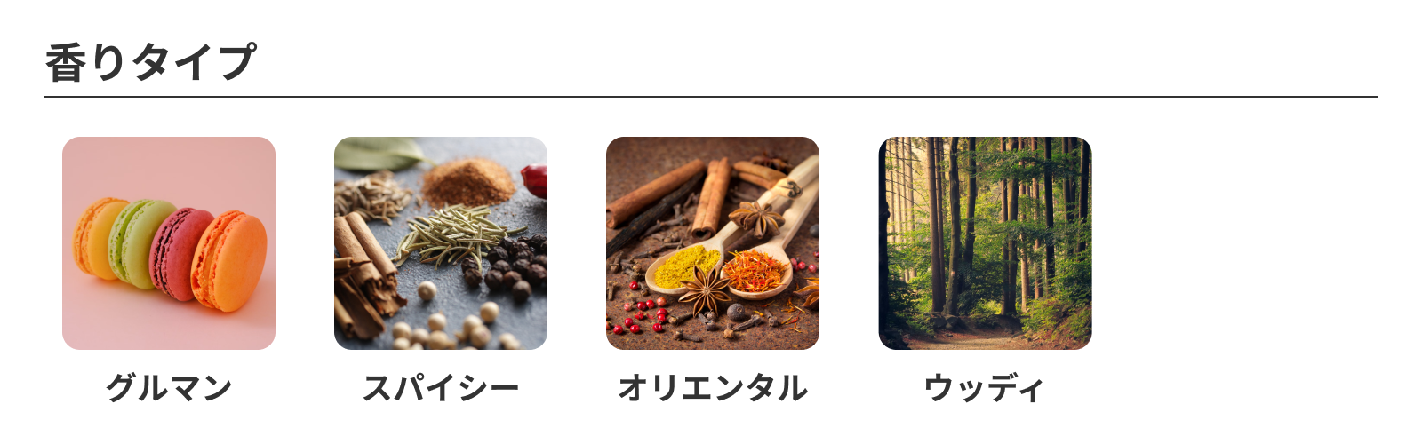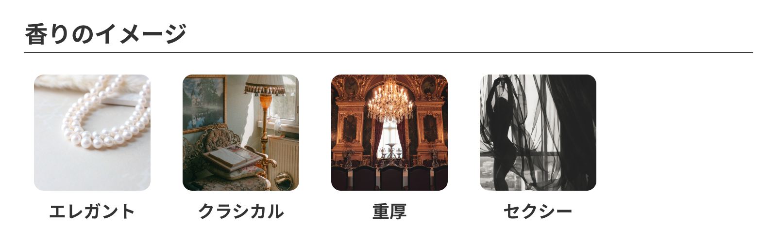 ・ノート:バニラ、ピンクペッパー、シプリオル、カラムス